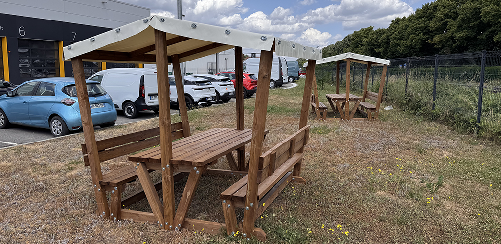 Parce que le bien-être au travail passe aussi par les petits détails, la concession Renault Saint-Étienne a aménagé un nouvel espace de pause avec des tables de pique-nique couvertes, spécialement pensé pour les collaborateurs.